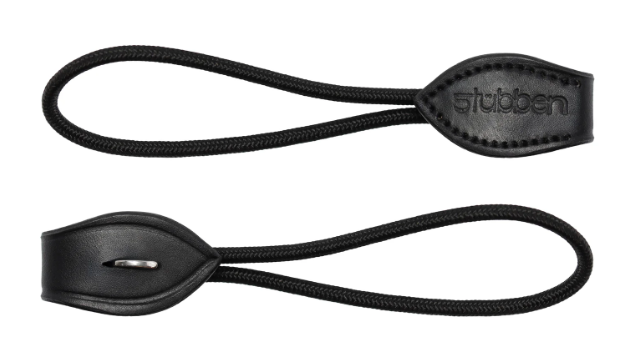 Stubben Pelham Straps are lighter and easier to attach. Measuring 15cm in length and made from fine webbed nylon rope which loops around the bottom ring and the leather strap with billet is fixed to the top ring.